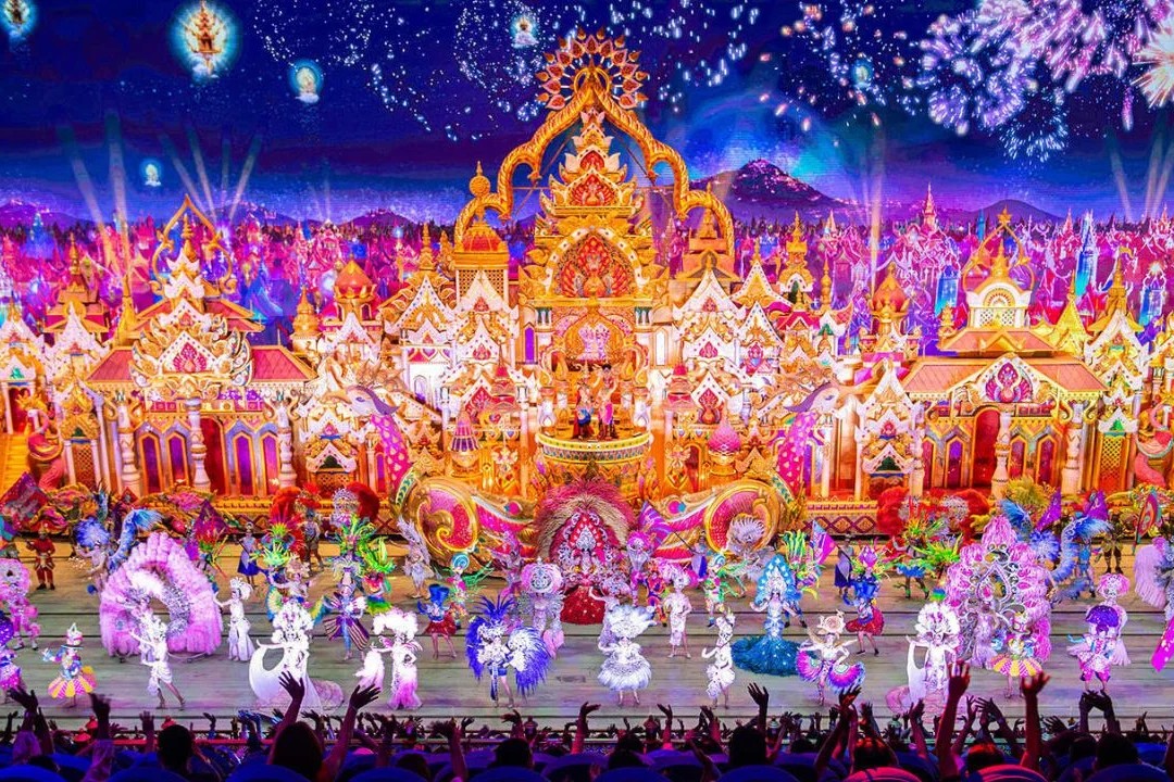 Carnival Magic is a spectacular nighttime attraction in Phuket. This Thai Cultural Carnival Park celebrates Thailand’s vibrant festivals and traditions with dazzling lights, colorful parades, and exciting performances for an unforgettable evening experience