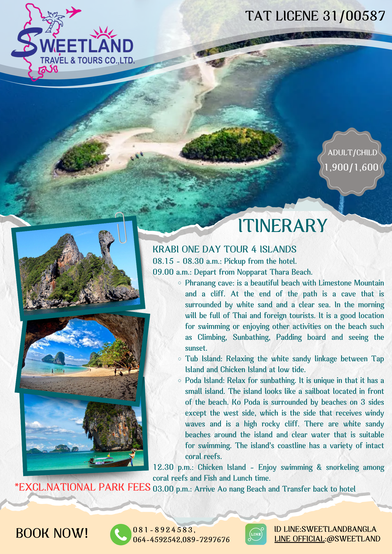 | Krabi One Day Tour ( 4 Islands) by Big Boad + speedboat | Adult | Child |